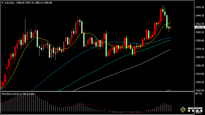 昨晚現貨黃金在2383.76美元/盎司止跌回升,最終報收2396.18美元/盎司,下跌0.23%。今日(週二)亞市金價開盤2396.65美元/盎司,早盤金價短線沖高至2403.76美元/盎司回落,然後在日低2388.14美元/盎司反彈回升,筆者截稿前金價在2401美元附近運行。
