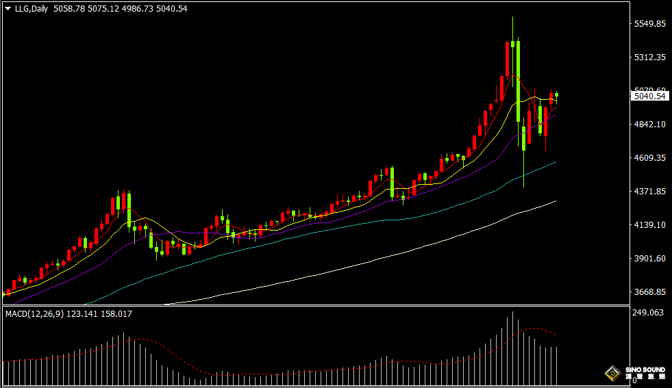 今日(週二)亞市開盤在5058.78美元/盎司後,早盤金價一度上下大幅震盪,最高至5075.12美元/盎司,最低至4986.73美元/盎司,隨後持續在5000美元關口上方盤整,截止漢聲集團分析師發稿前,金價在5040美元附近運行。