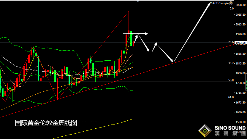另外,主圖的上行趨勢通道保持,中軌也對其產生支撐,斐波拉契擴展線支撐位置在61.8的1812美元,故此長期看,此位置附近則是很好的入場機會,那么就此看漲的進一步目標則是2300-2500美元。如果跌破1812美元,那么就要做好回落至1680美元乃至更低的位置了,不過個人還是偏向看好支撐上行。