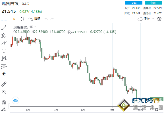 周三(9月29日),隨著美元上漲,白銀一度大跌逾4%,并觸及一年多以來的最低點。白銀盤中一度重挫4.6%至21.42美元/盎司,為2020年7月以來的最低水平;勢創一年來的最大月度跌幅。
