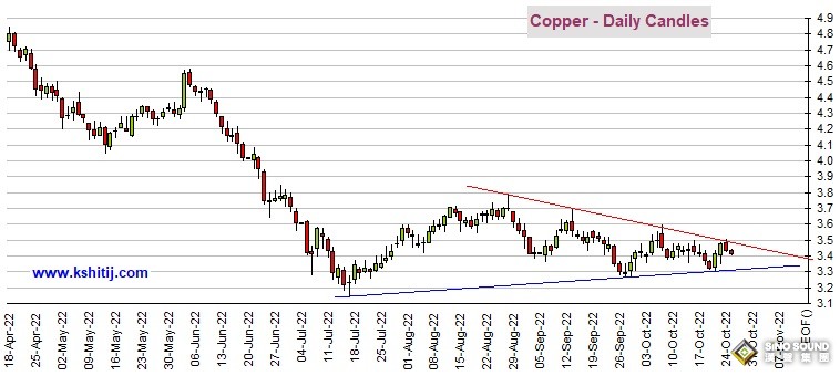 銅方面,Kshitij諮詢服務團隊表示,銅期貨繼續在3.5-3.3美元/磅區間內交易。只要保持在阻力位3.5美元/磅下方,那麼銅期貨可能會跌向3.3美元/磅。只有突破3.5美元/磅,銅期貨才可能測試3.6美元/磅。