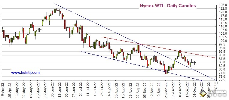 WTI原油期貨保持在87.50美元/桶的阻力位以下,仍在87.50-82.50美元/桶區間內交易。如果朝上述區間的任何一端實現突破,將決定油價是漲向90美元/桶,還是跌向80美元/桶、甚至更低的77美元/桶。