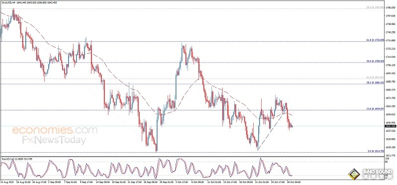 週一(10月31日)亞市尾盤,現貨黃金維持跌勢,金價正逼近1640美元/盎司關口。知名財經資訊網站Economies.com週一最新撰文,對日內黃金走勢進行前瞻分析。