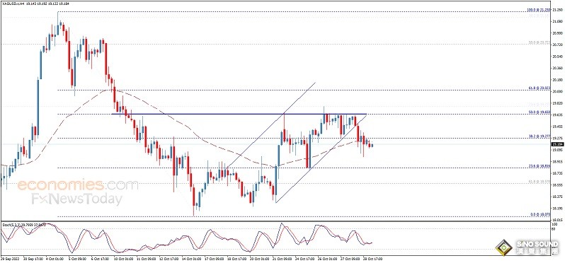 週一(10月31日)亞市尾盤,現貨白銀維持跌勢,銀價目前位於19.10美元/盎司附近。知名財經資訊網站Economies.com週一最新撰文,對日內白銀走勢進行前瞻分析。