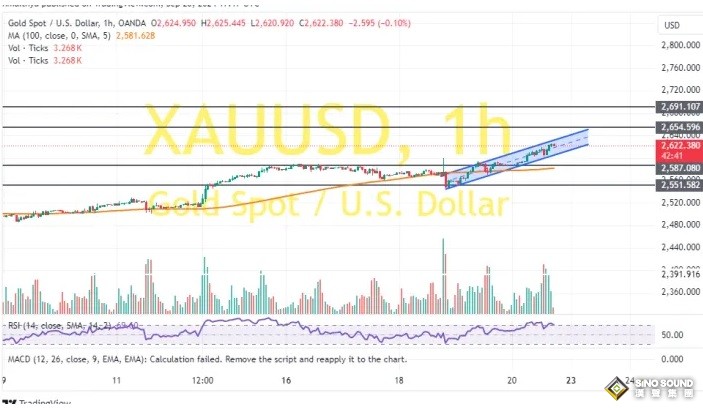 Kitonyi表示,週五,金價從約2587美元/盎司的關鍵支撐位反彈至約2620美元/盎司上方。在60分鐘的圖表中,金價在一個上升通道內交易。