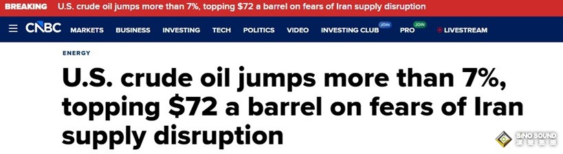美國原油飆升逾7% 市場擔憂伊朗供應中斷